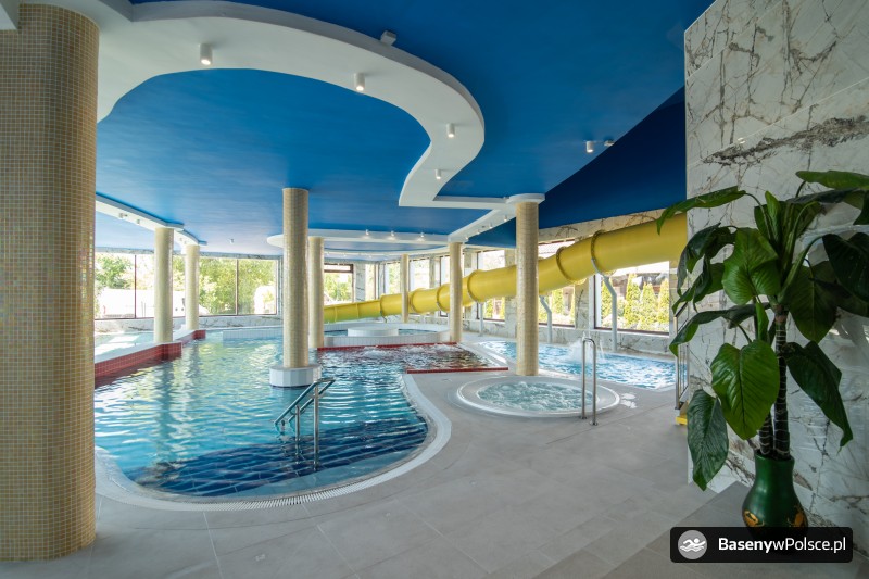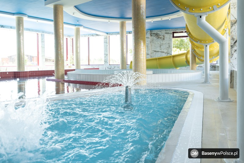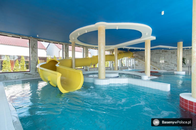 Do Państwa dyspozycji jest: park wodny z basenem rekreacyjnym z gejzerami wodnymi, rwącą rzeką, jacuzzi solankowym, leżankami wodnymi ,brodzikiem z fontanną wodną, 20-metrowa zjeżdżalnia wodna i sauna parowa i grota solna.